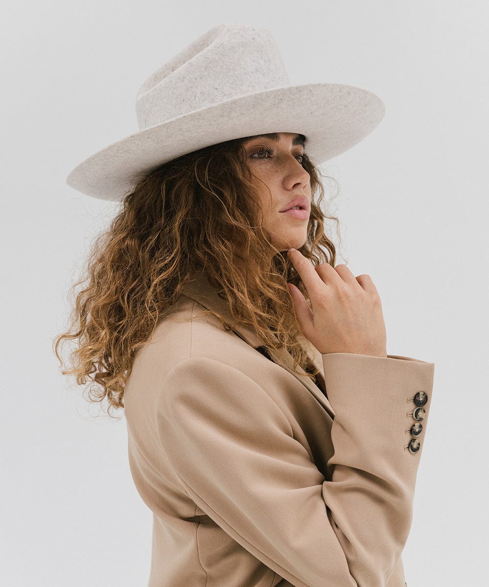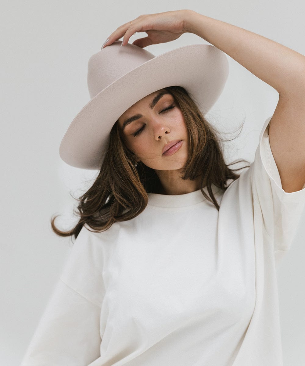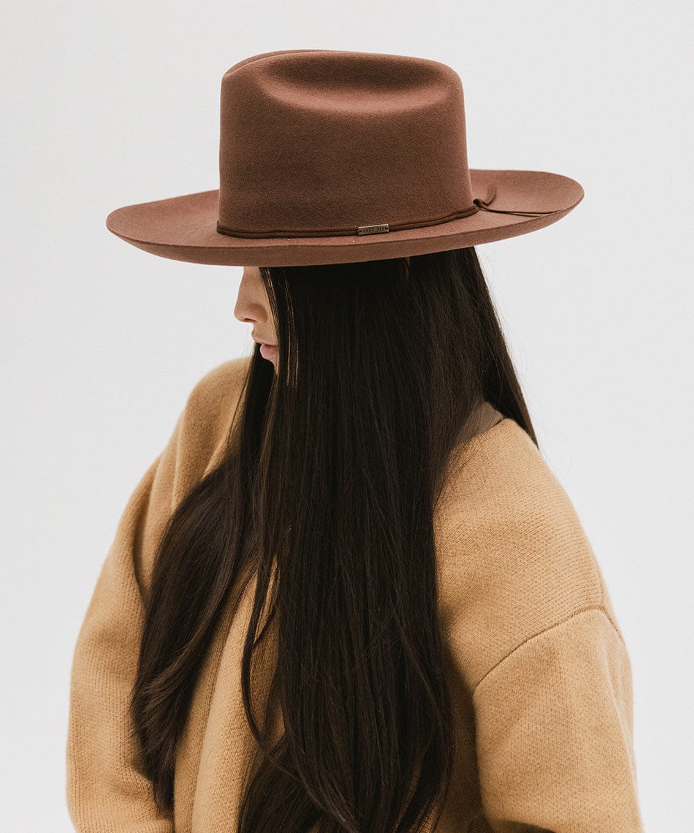 The Ezra Western Hat blends bold statement fashion with classic Western roots. Featuring a traditional cattleman crown and upturned brim, Ezra is designed to be worn from city streets to countryside escapes. The tall crown gives it a refined, feminine edge, while the structured shape keeps it timeless yet fashion-forward. Ezra comes with a removable tonal grosgrain band, finished with a Gigi Pip pin for a touch of signature detail. Want to switch up your look? Additional bands are sold separately for easy customization. Whether you’re styling it up for an event or keeping things casual, the Ezra Hat delivers modern Western vibes with elevated ease. It’s a versatile staple for every hat lover’s wardrobe.