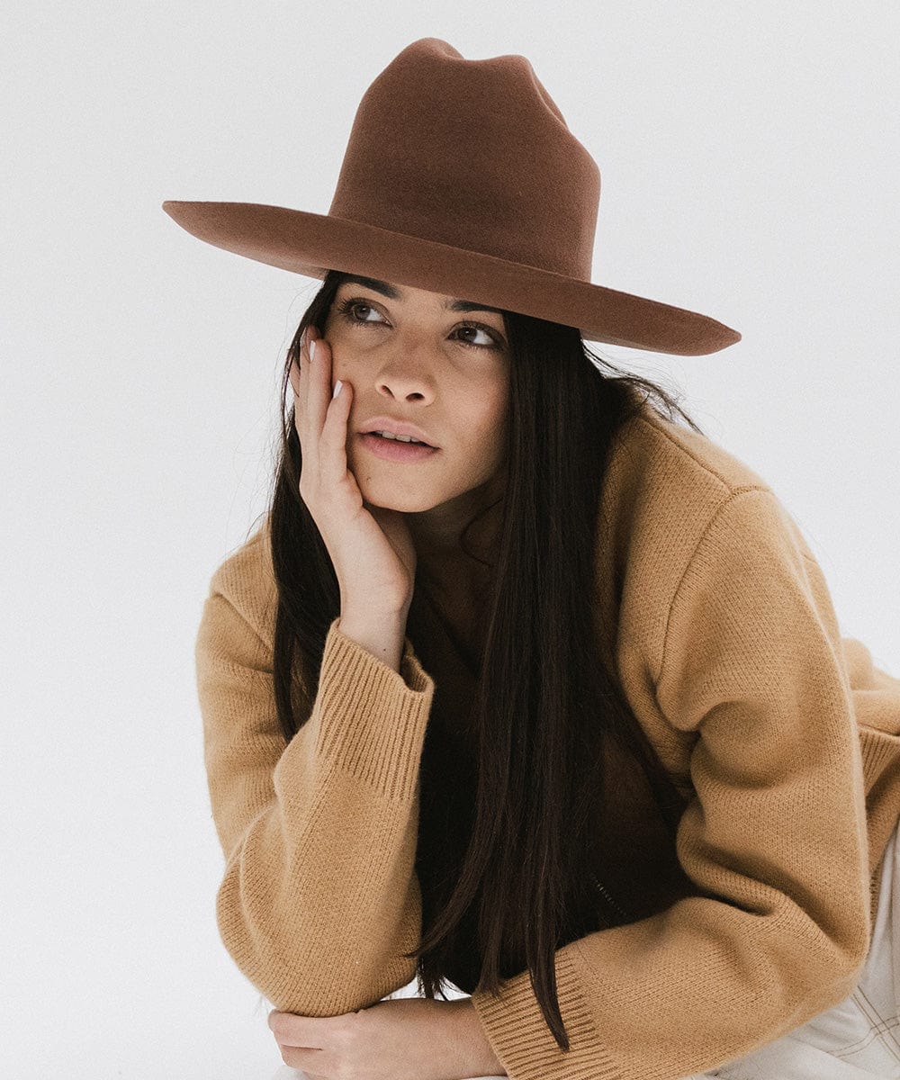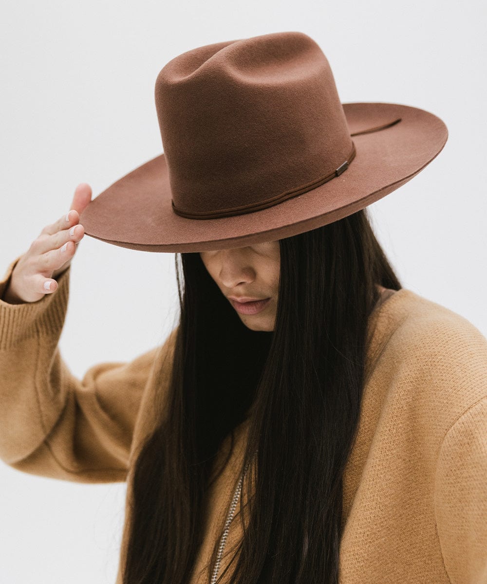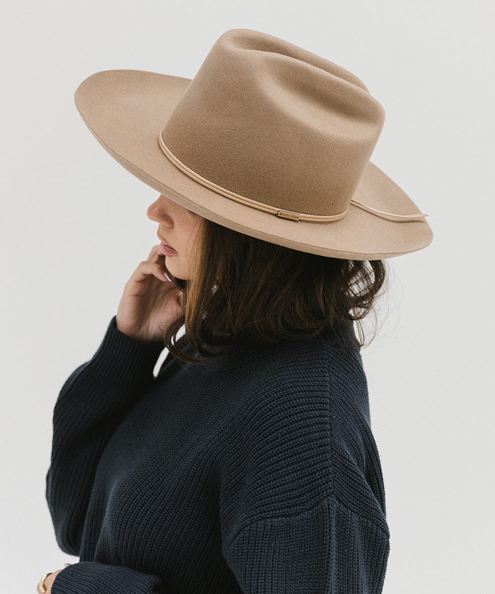 The Ezra Western Hat blends bold statement fashion with classic Western roots. Featuring a traditional cattleman crown and upturned brim, Ezra is designed to be worn from city streets to countryside escapes. The tall crown gives it a refined, feminine edge, while the structured shape keeps it timeless yet fashion-forward. Ezra comes with a removable tonal grosgrain band, finished with a Gigi Pip pin for a touch of signature detail. Want to switch up your look? Additional bands are sold separately for easy customization. Whether you’re styling it up for an event or keeping things casual, the Ezra Hat delivers modern Western vibes with elevated ease. It’s a versatile staple for every hat lover’s wardrobe.